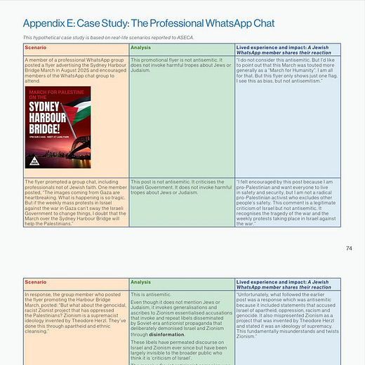 It is therefore unambiguously the official position of the Australian government’s appointed authority on antisemitism that it is hateful and abusive toward Jews and their religion to oppose the racist political ideology underpinning the modern state of Israel.