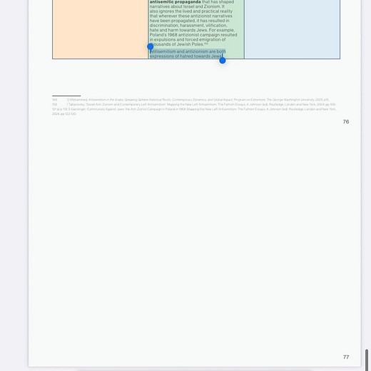 However bad you’re imagining it is, it’s worse. The handbook, set to be formally launched later this week under the title “Understanding Antisemitism in Australia,” explicitly conflates antisemitism and antizionism with statements like “Antisemitism and antizionism are both expressions of hatred towards Jews” and asserting that it is antisemitic to accuse Israel of “apartheid, oppression, racism and genocide.”