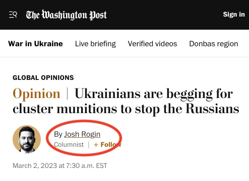 (While we're on the subject, why does The Washington Post need to give regular opinion columns to Max Boot, John Bolton, Jennifer Rubin, and Josh Rogin? They're all warmongering neocons. I think even neocons would agree that's too many neocons.)