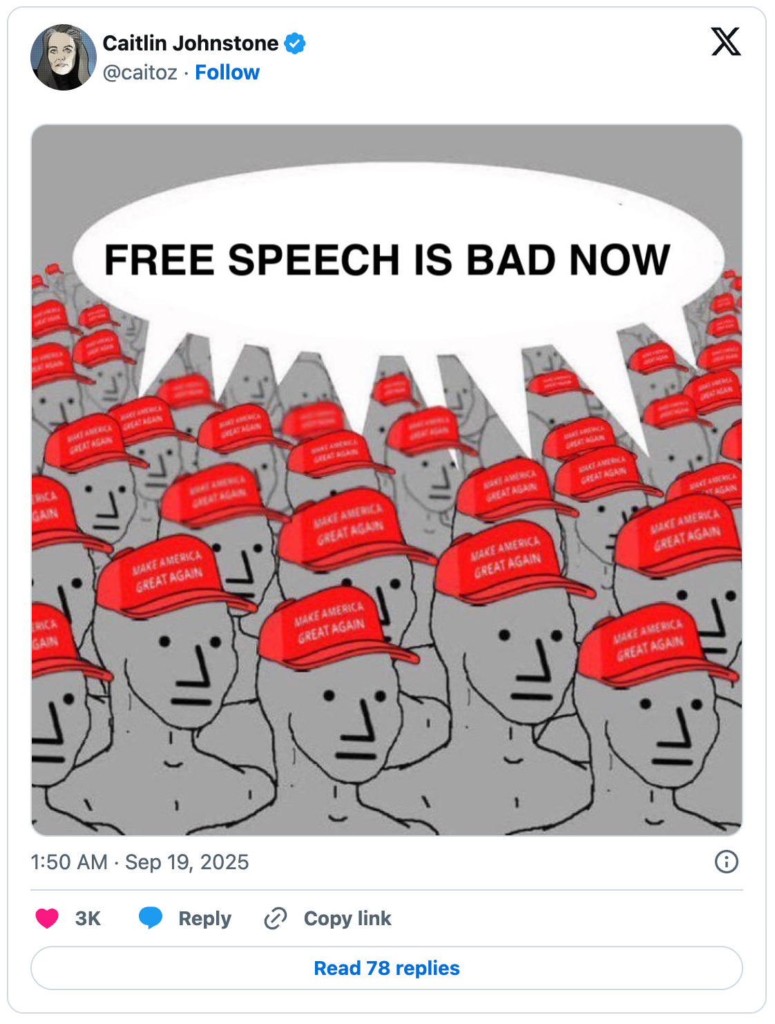 Since I began criticizing the Trump administration’s aggressive assaults on free speech in the wake of the Charlie Kirk killing I’ve had American rightists falling all over themselves in my social media notifications trying to justify government censorship. Yesterday I had multiple Trump supporters try to tell me that it should be illegal to lie, and that anyone who tells lies should be stopped from lying by the government. One of them told me he’s an anarchist.