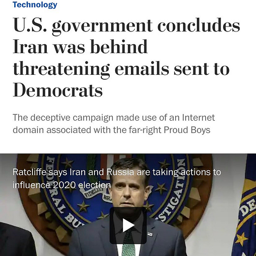 Imagine for example if Biden gets in after the US intelligence cartel has successfully marketed the narrative to click-hungry media outlets that Iran has been meddling on his behalf. What kinds of political pressure will his administration be placed under if it wants to restore the Iran deal and begin rolling back sanctions and de-escalating tensions? Probably very similar to the pressures Trump was placed under to continually advance hawkish cold war escalations against Russia despite his stated desire for Washington and Moscow to get along.