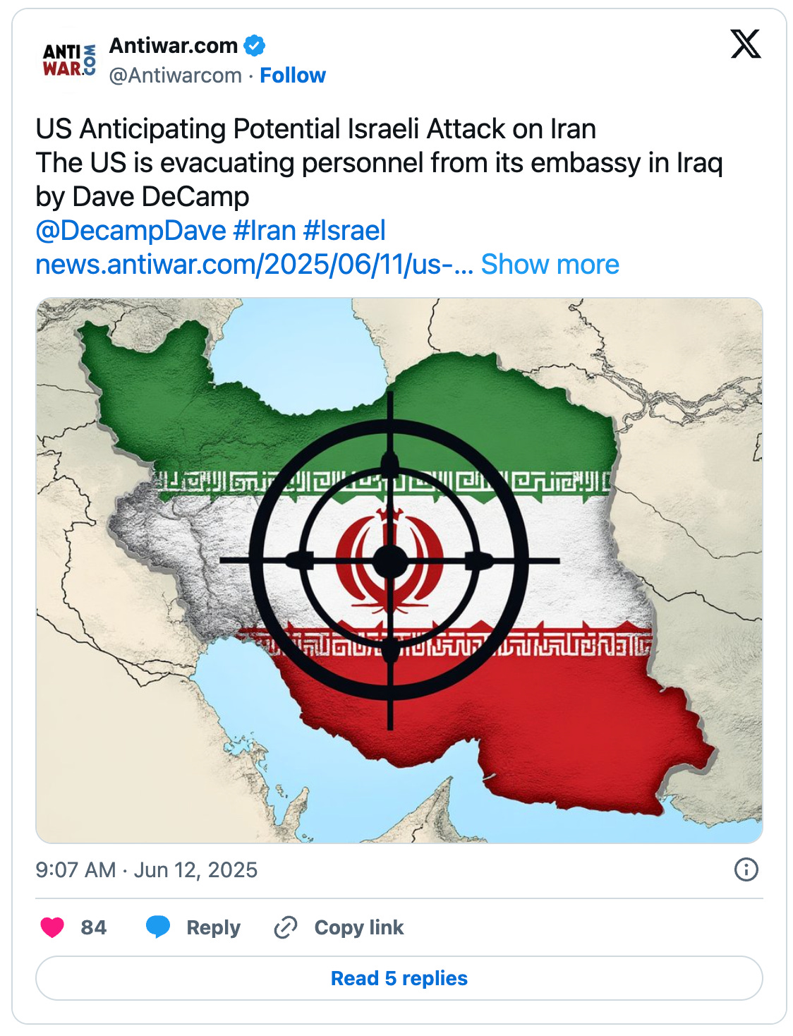 It’s so stupid that this keeps happening. This could all be avoided by the US simply ceasing to support the genocidal apartheid state of Israel no matter what it does. The fact that Washington has continued to pour weapons into Israel despite all its warmongering and genocide since 2023 means the US supports everything that Israel has been doing.