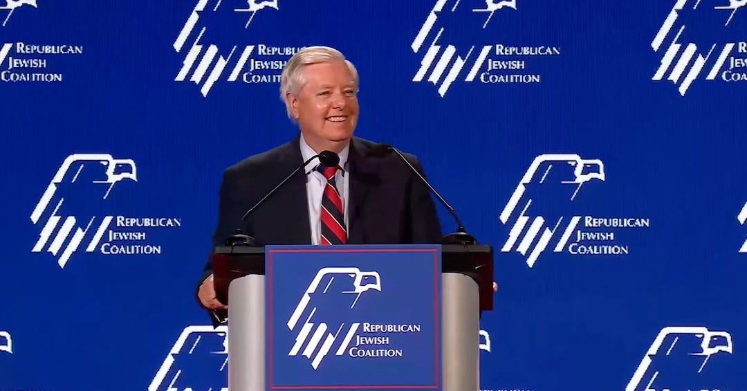 Massacre fetishist Lindsey Graham said “Trump is my favorite president” because “we’re killing all the right people and we’re cutting your taxes” during a speech to the Republican Jewish Coalition Annual Leadership Summit on Friday.