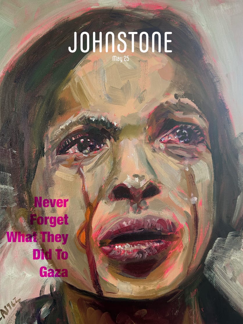 This month’s issue features a painting based on a photo from Palestinian journalist Moaz Abutaha, and it’s titled “Never Forget What They Did To Gaza.” Because we must never, ever let anyone forget.