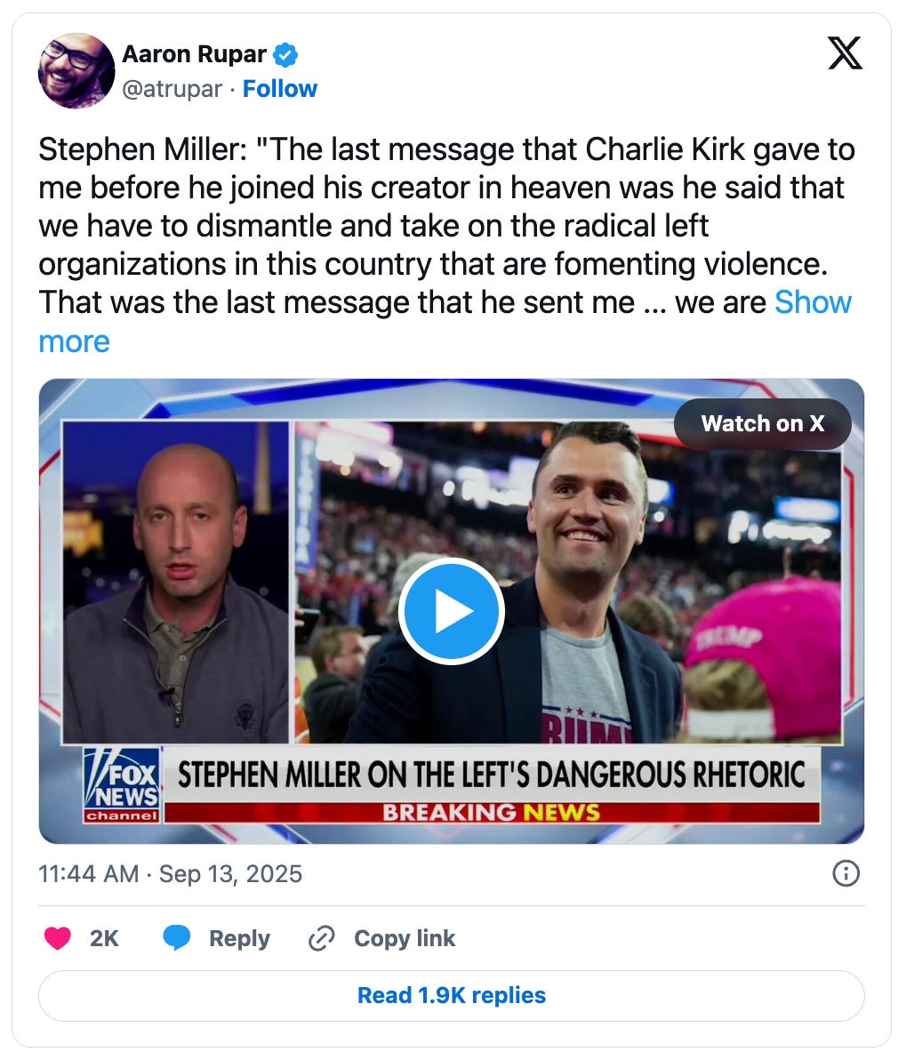 "Charlie Kirk rejected an offer earlier this year from Israeli Prime Minister Benjamin Netanyahu to arrange a massive new infusion of Zionist money into his Turning Point USA (TPUSA) organization, America’s largest conservative youth association, according to a longtime friend of the slain commentator speaking on the condition of anonymity. The source told The Grayzone that the late pro-Trump influencer believed Netanyahu was trying to cow him into silence as he began to publicly question Israel’s overwhelming influence in Washington and demanded more space to criticize it." THE GRAYZONE